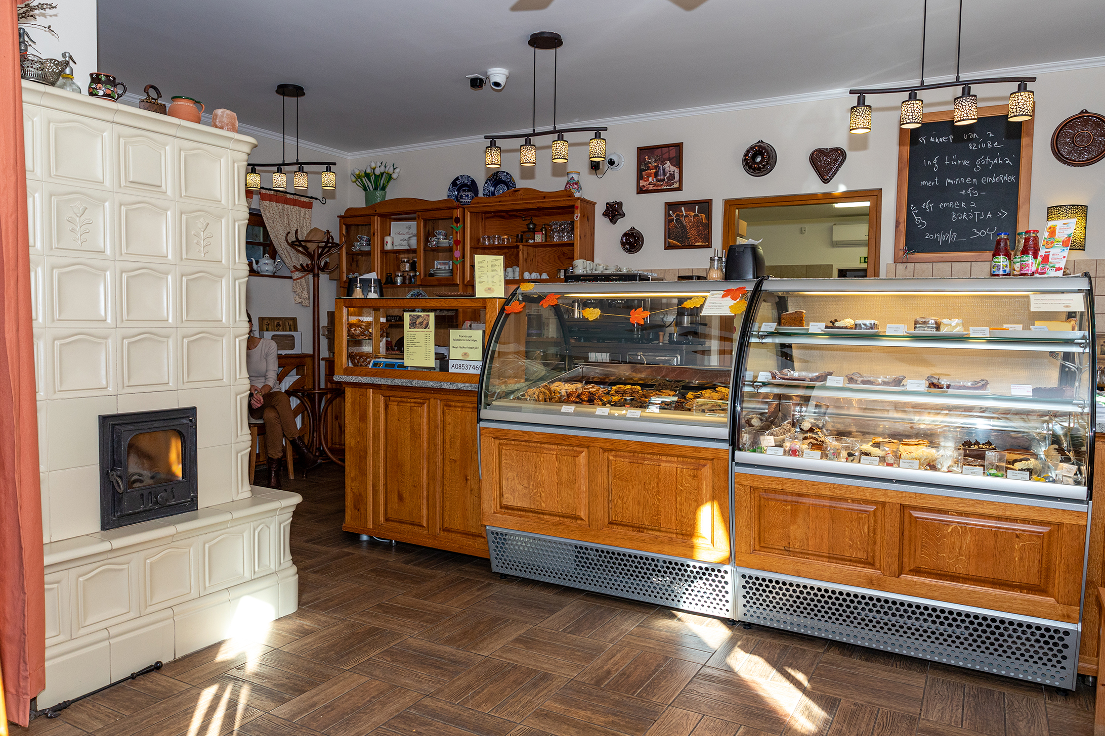 Az amúgy is családias hangulatú berendezés, Zsuzsa édesapjának képével és a még gyerekkorában vásárolt sütőformákkal a falon, a karácsonyra hangolódás jegyében diszkrét dekorációval egészül ki. A kínálat is igazodik az ünnepváráshoz, diós, mákos, szilvás-mandulás és gesztenyés beigli, áfonyás gyümölcskenyér, flódni, zserbó és kuglóf is készül ilyenkor, amelyekre rendelést még az ünnep előtt felvesznek.