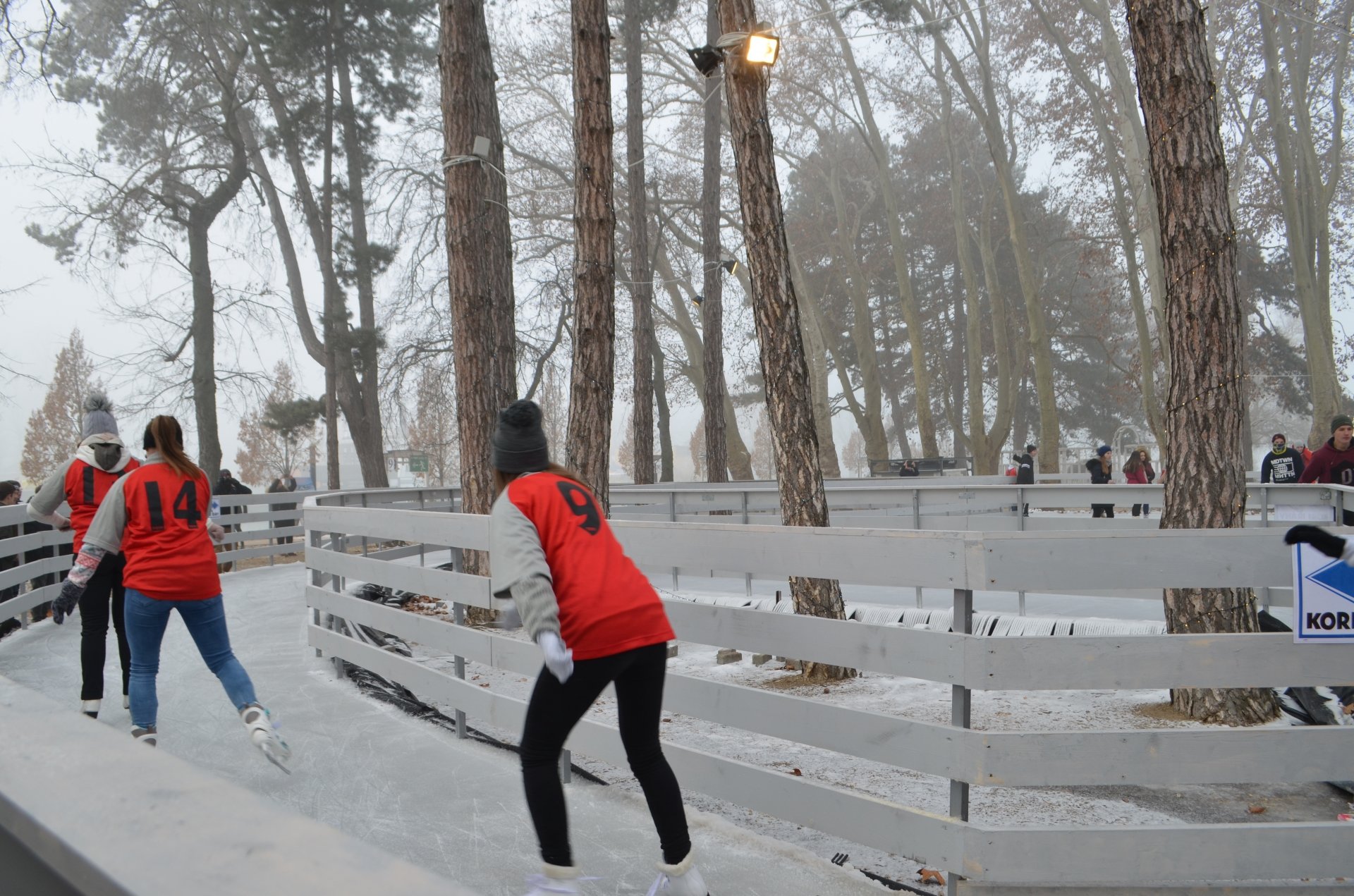 Keszthelyen a Móló bejáratánál várja egy köralakú jégpálya a korcsolyázni vágyókat.  A 20 méter átmérőjű, 314 négyzetméteres pályán egyszerre 45-en korcsolyázhatnak. A jégpálya csak január 3-ig üzemel.